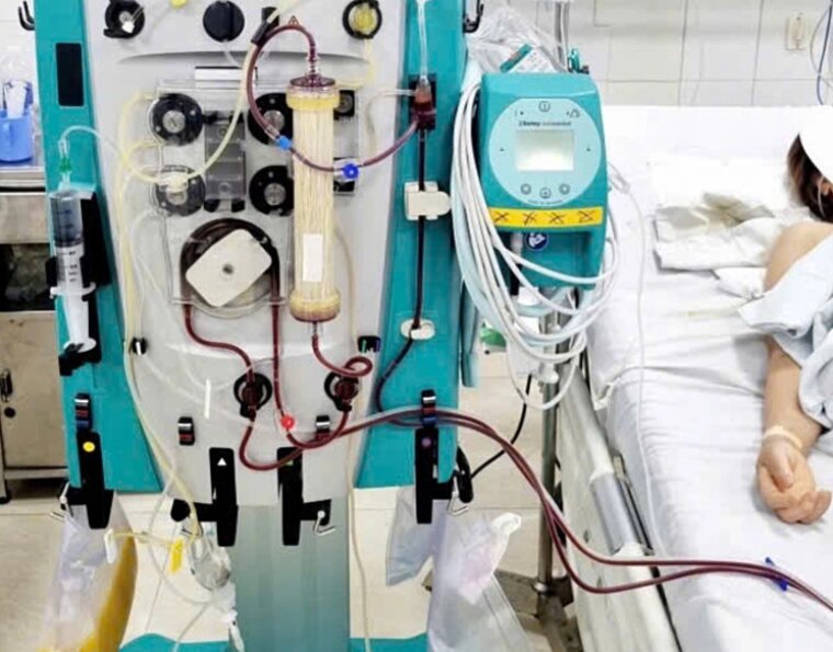 Nữ bệnh nhân được điều trị tích cực, lọc máu, thay huyết tương để cứu sống tính mạng. Ảnh: Bệnh viện cung cấp