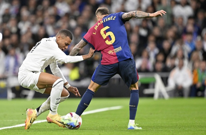 Mbappe đi bóng trong trận Real Madrid thua Barcelona 0-4 ở vòng 11 La Liga trên sân Bernabeu, Madrid, Tây Ban Nha ngày 26/10/2024. Ảnh: Reuters.