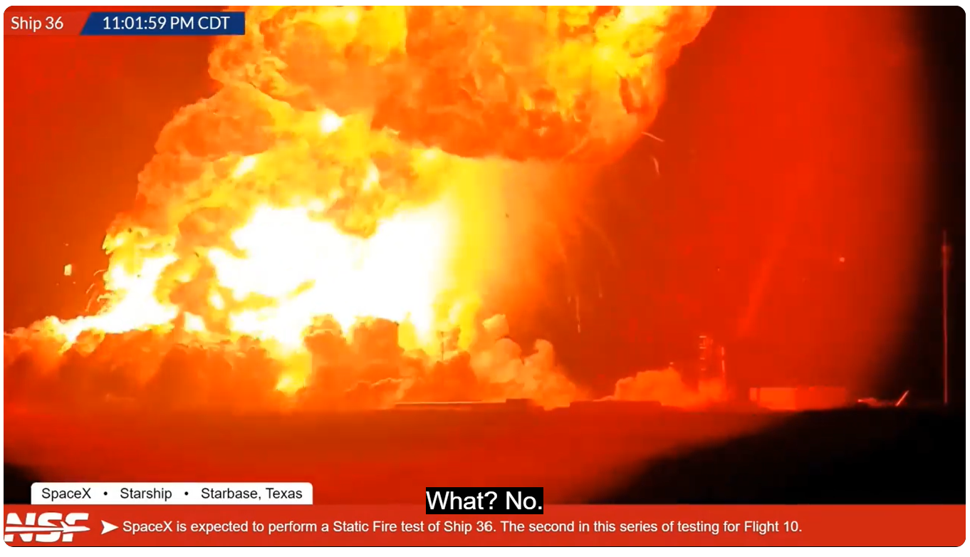 SpaceX cho biết tên lửa đang chuẩn bị cho chuyến bay thử nghiệm thứ 10 khi "gặp phải sự cố lớn khi đang ở trên bệ thử nghiệm tại Starbase", mà không giải thích thêm về bản chất của sự cố.