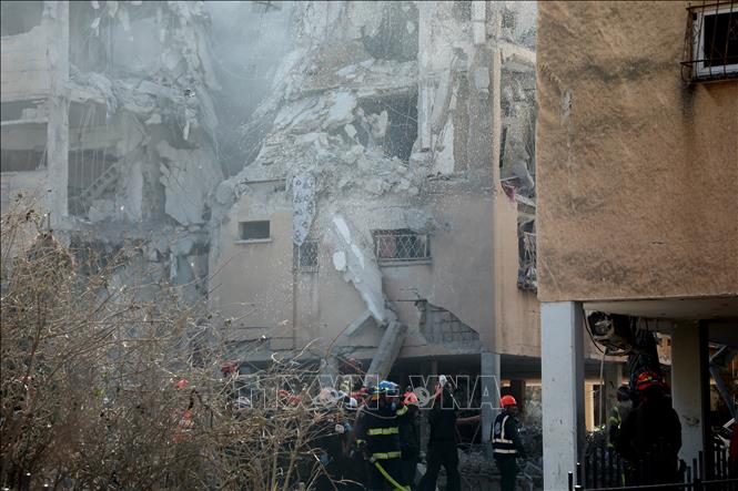 Hiện trường một vụ tấn công bằng tên lửa từ Iran xuống thành phố Holon, miền Trung Israel ngày 19/6/2025.