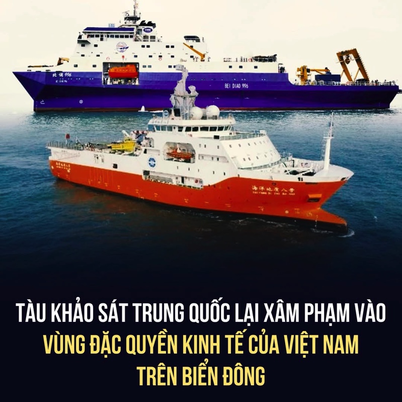 Nóng: Tàu nghiên cứu/khảo sát biển sâu Bei Diao 996 của chính quyền Trung Quốc đang xâm phạm vào vùng đặc quyền kinh tế của Việt Nam, cách bờ biển tỉnh Phú Yên khoảng 170 hải lý. Còn tàu Hải Dương địa chất 4 của Trung Quốc đã tiến xuống khu vực quần đảo Trường Sa. Theo tin từ trang Dự án đại ký sự Biển Đông.