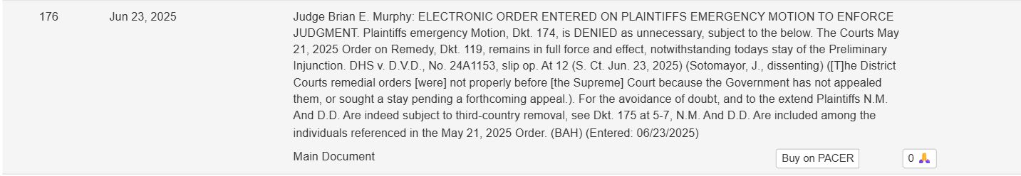 lần đầu một thẩm phán quận, phán quyết lệnh của Tối cao pháp viện không có hiệu lực