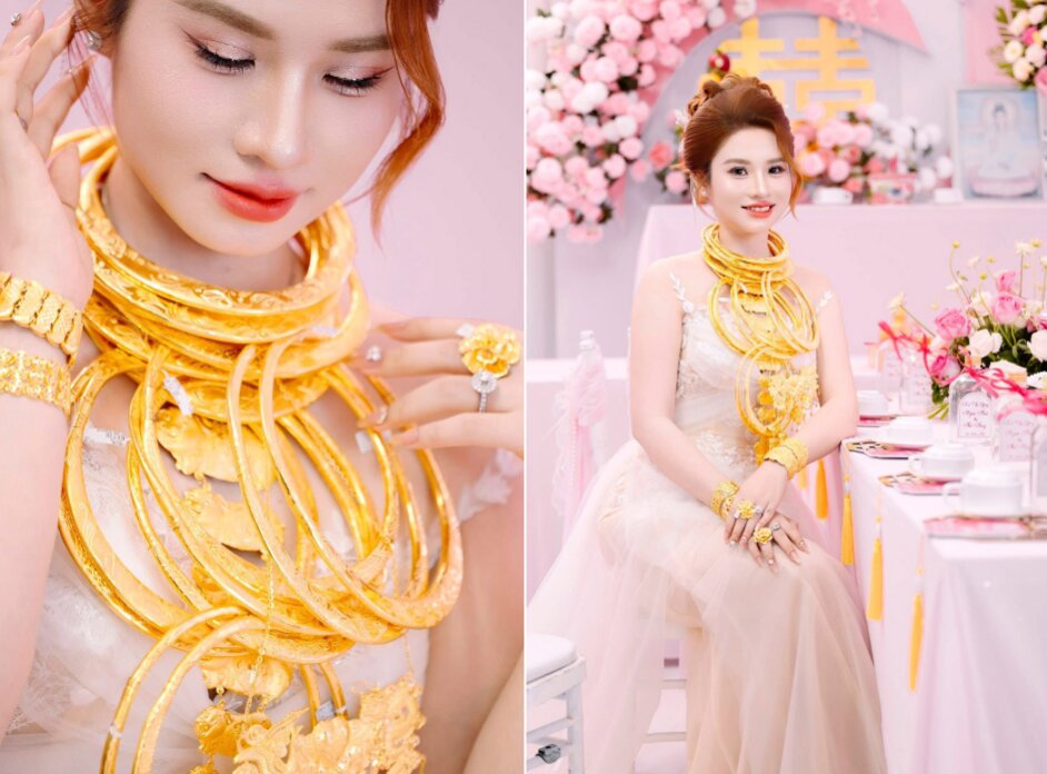 Cô dâu xinh đẹp đeo vàng đầy cổ