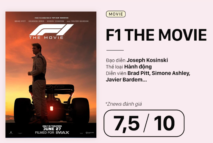 Nhìn chung, F1 không chỉ là màn phô diễn kỹ thuật đơn thuần, mà còn là lời khẳng định phong độ trở lại của Pitt, một biểu tượng màn bạc vẫn cháy hết mình cùng đam mê. Tác phẩm đang nhận về nhiều lời khen từ cả giới phê bình lẫn đại chúng, với 83% đánh giá tích cực của chuyên gia và 97% từ các khán giả trên trang tổng hợp Rotten Tomatoes.