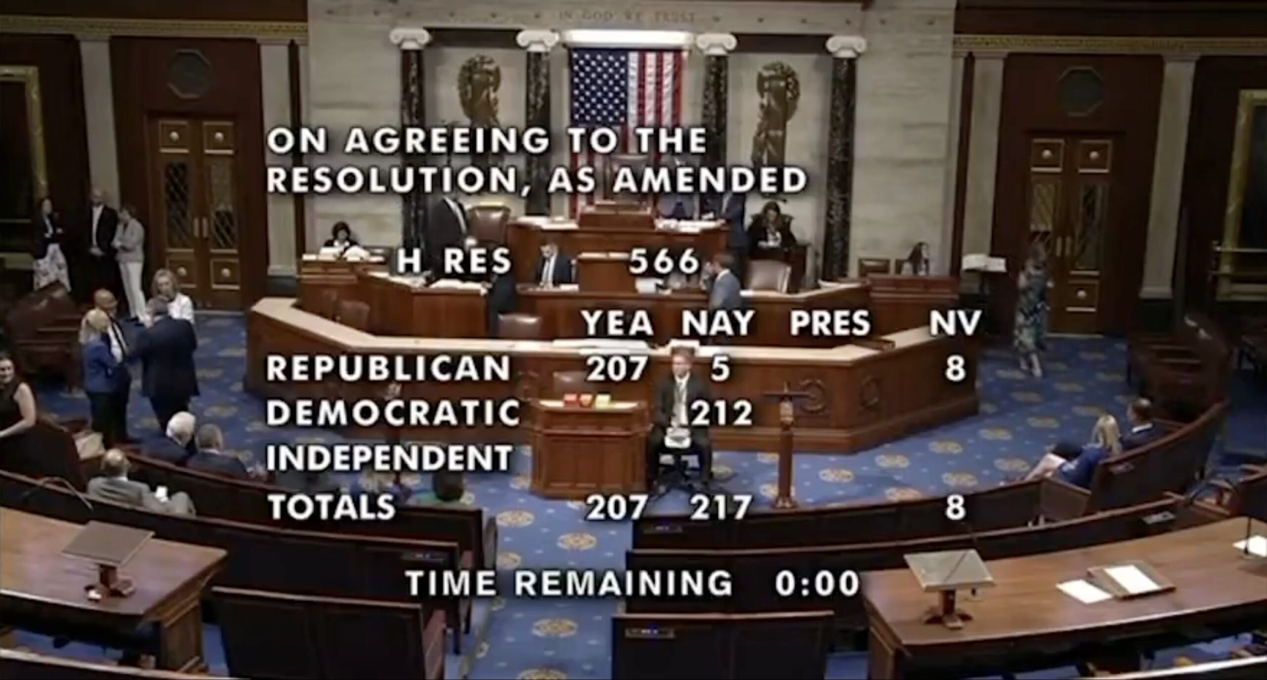 Vào đêm thứ Tư, Nghị quyết 566 của Hạ viện đă không được thông qua do không có sự thống nhất nào của Đảng Cộng ḥa và không có sự ủng hộ hoàn toàn của Đảng Dân chủ.