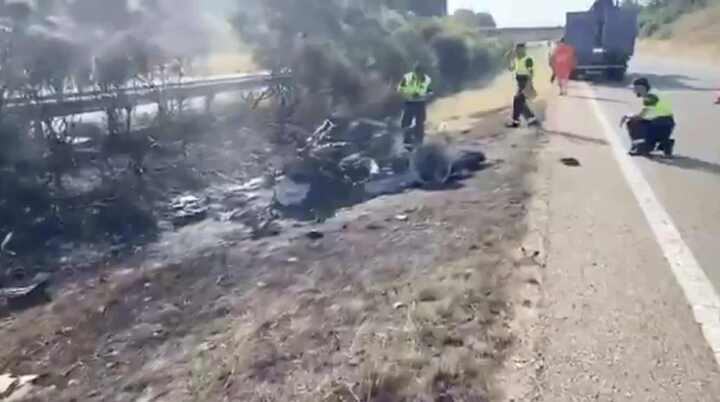 Chiếc xe của Diogo Jota bị thiêu rụi.