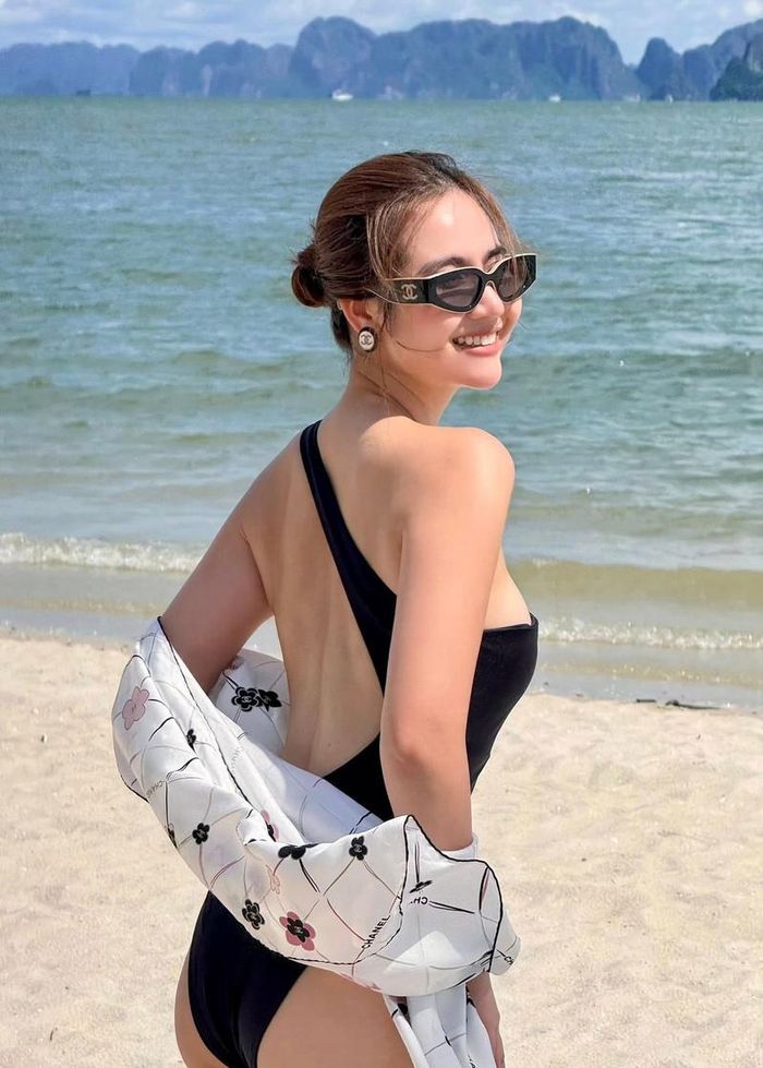 Cô thường ưa chuộng những bộ bikini có thiết kế liền mảnh, khai thác tối đa lợi thế vóc dáng với những chi tiết dây mảnh, cắt khoét táo bạo, tôn lên vòng 3 nở nang cùng làn da mịn màng.