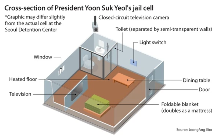 Sơ đồ phòng giam của cựu Tổng thống Yoon Suk Yeol. Nguồn: Korea JoongAng Daily.