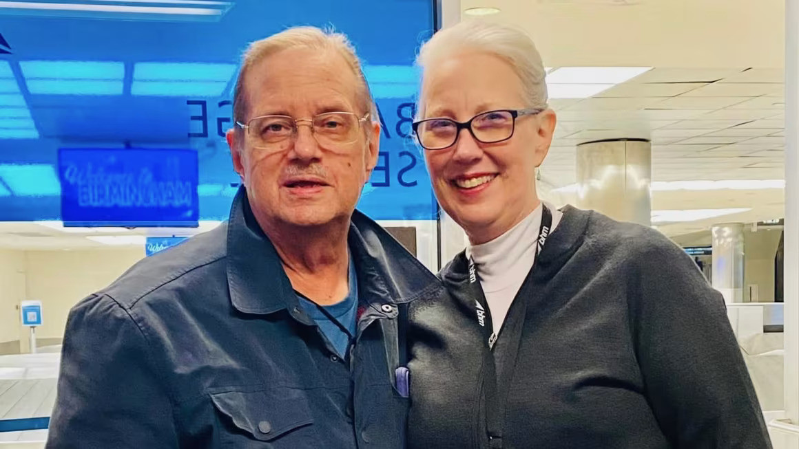 Mối nhân duyên đặc biệt giữa ông Bruce Gamble (74 tuổi) và bà Jill Hickey (57 tuổi). Ảnh: CNN
