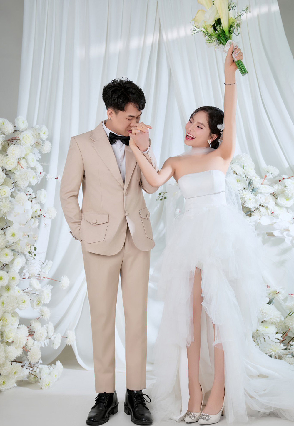 Anh rể của Huấn chia sẻ: “Chúc mừng hạnh phúc 2 em. Hai em đã trải qua hành trình rất dài để có ngày hôm nay. Anh chị và cháu chúc 2 em viên mãn, tràn đầy niềm vui, tiếng cười và sự thông cảm. Chúc ngôi nhà của tụi em luôn tràn ngập yêu thương...”.