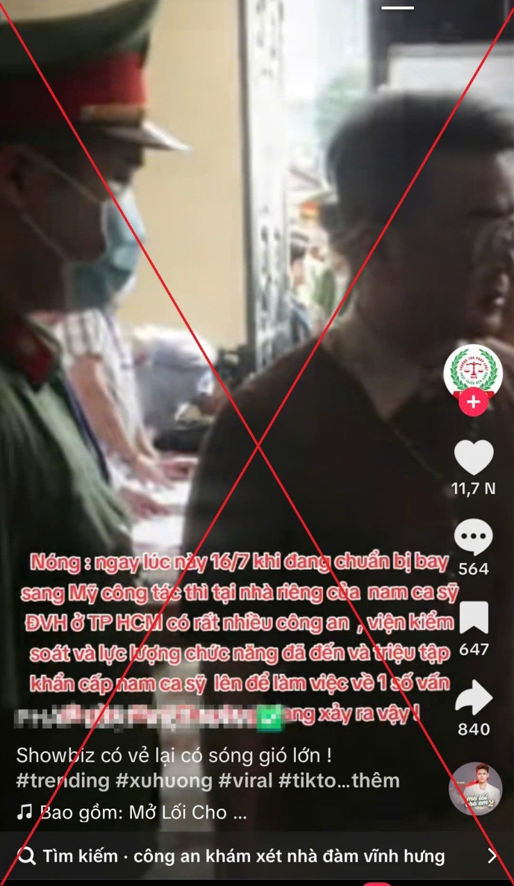 Mạng xã hội rộ tin "công an đến nhà ca sĩ Đàm Vĩnh Hưng". Cụm từ này còn lên xu hướng tìm kiếm trên nền tảng TikTok.