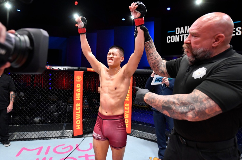 Steven Nguyen mừng chiến thắng trước Theo Rlayang tại Dana White Conterder Series ngày 22/9/2021.