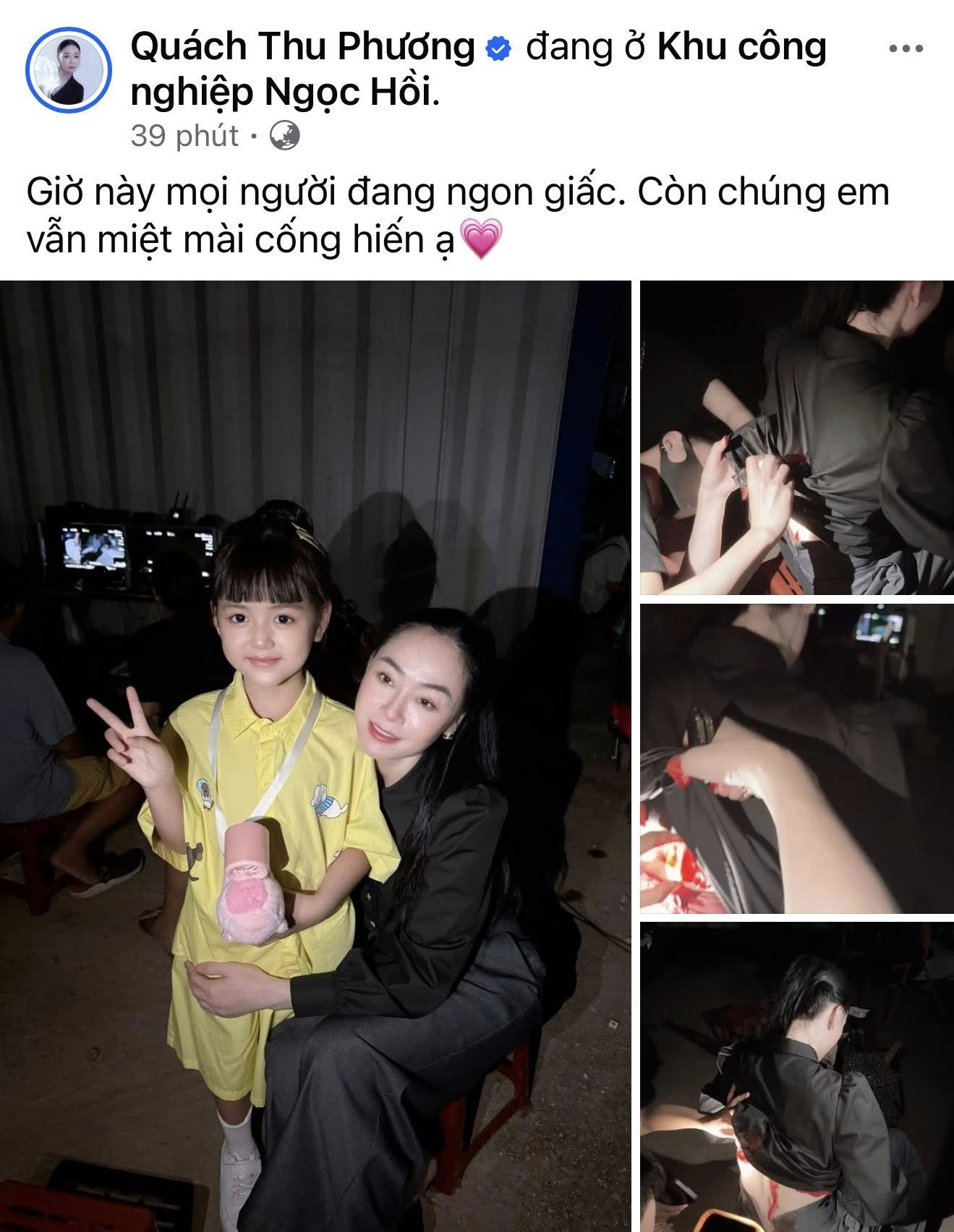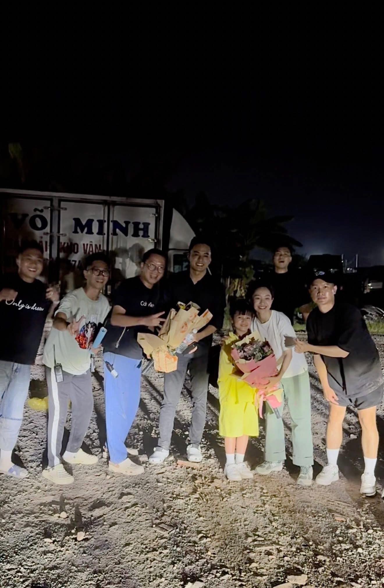 Trong loạt ảnh hậu trường, không khí quay phim diễn ra vào rạng sáng, cho thấy sự đầu tư nghiêm túc và tiến độ khẩn trương của đoàn phim. Bé Cherry An Nhiên cùng mẹ cũng có mặt xuyên suốt, cùng chụp ảnh với dàn diễn viên.