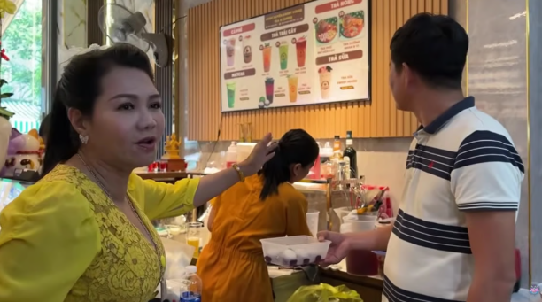 Về quán trà sữa mới mở, Ngọc Huyền lên tiếng khi đàn em khen đồ rẻ quá: "Đồ ở đây rất rẻ, cốc trà sữa có 33 nghìn đồng. Cuộc đời tôi chỉ muốn bà con được ăn ngon, lời chút đỉnh là được rồi, không cần lời nhiều".