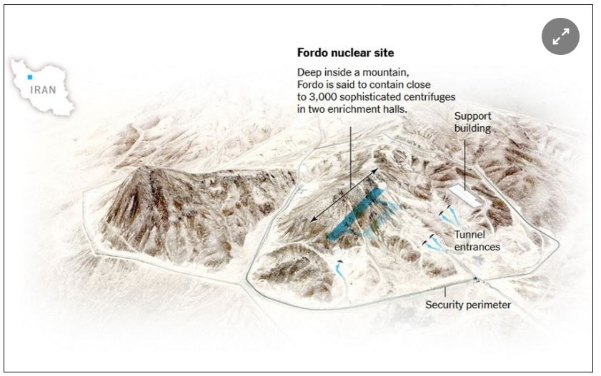 Cơ sở hạt nhân Iran Fordow. Đồ họa: Nytimes.