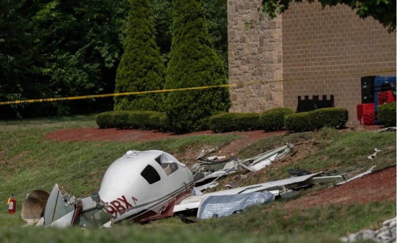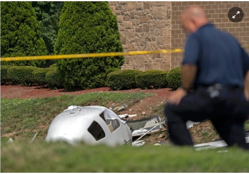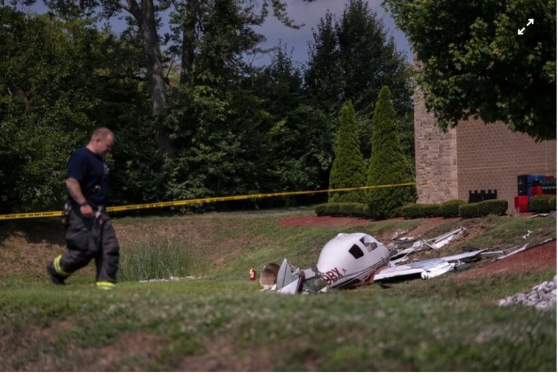 Xác chiếc máy bay nhỏ méo mó nằm trên bãi cỏ sau vụ tai nạn khiến phi công tử vong tại chỗ. Không có ai dưới mặt đất bị thương trong vụ tai nạn này, Daily Journal đưa tin .