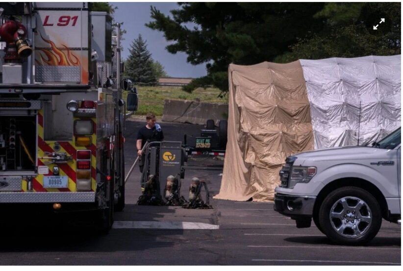 Vụ rơi máy bay nhỏ xảy ra phía sau cửa hàng Circle K trên đường Main Street, Greenwood (bang Indiana, Mỹ) hôm 30/7. Người duy nhất trên máy bay, được xác định là nữ phi công gốc Việt Anh-Thu Nguyen (44 tuổi), đã thiệt mạng, theo IndyStar. Trong ảnh, lính cứu hỏa làm nhiệm vụ đưa phi công ra khỏi máy bay sau vụ tai nạn.