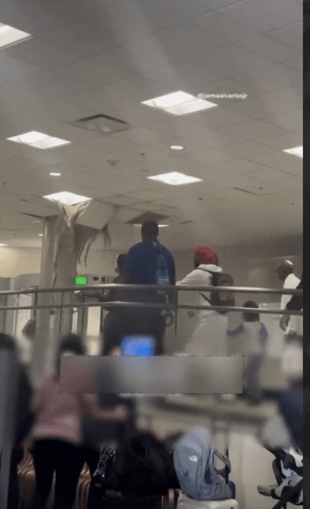 Carlos Jr. cho biết với 11 Alive rằng sự cố xảy ra khi anh đang chờ chuyến bay bị hoãn từ Atlanta, Georgia đến Dallas, Texas. “Trong lúc chờ đợi, chúng tôi bất ngờ thấy nước chảy xối xả từ trần nhà, kéo dài khoảng 10 đến 15 giây. Mọi thứ sau đó trở nên tệ hơn. Trần nhà sụp xuống và mùi hôi thối thật khủng khiếp,” anh kể lại.