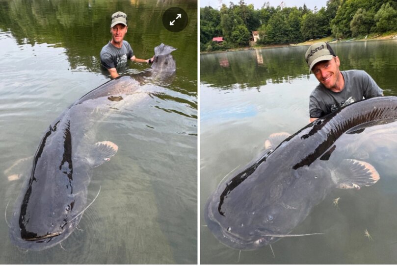 Jakub Vagner (43 tuổi) câu được con cá trê khổng lồ tại hồ chứa Vranov, phía nam Prague, Cộng hòa Séc vào đầu tháng 8. Sau khi chụp ảnh kỷ niệm, anh đã thả nó trở lại hồ. Trong ảnh, người dẫn chương trình truyền hình kiêm ngư dân đứng dưới vùng nước nông, tay giữ phần đầu to lớn của con cá ngay cạnh mặt mình, theo Daily Mail.