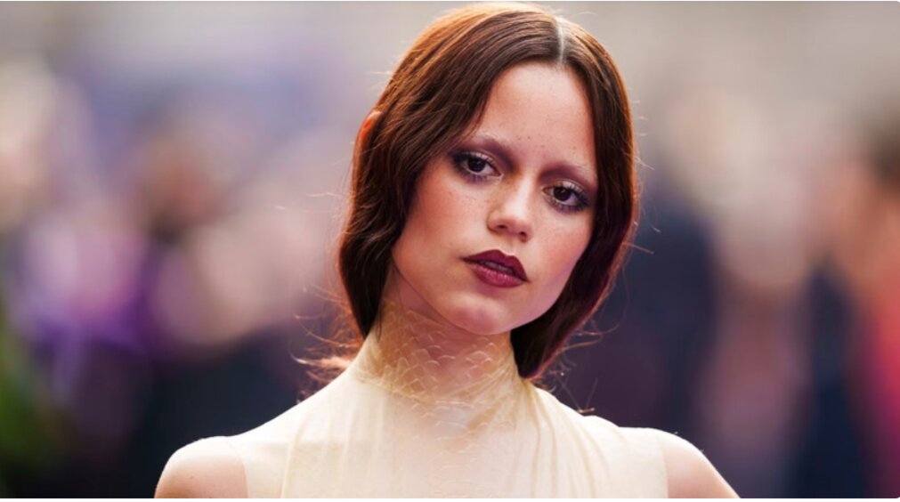 Nữ diễn viên Jenna Ortega cùng đôi mắt được trang điểm với những vết quầng thâm đậm, gương mặt tái nhợt và gò má cao được nhấn bằng tông xám. (Nguồn: CNN)
