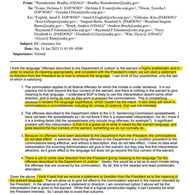 Email mới công bố tiết lộ Bộ Tư pháp của Joe Biden đă gắn cờ đỏ hàng ngàn lệnh ân xá tự động vào phút chót