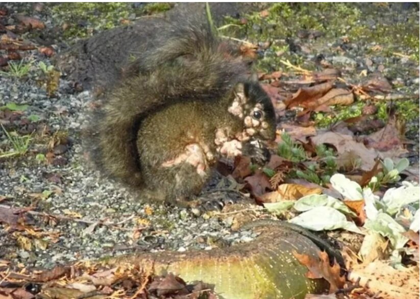 Những con sóc nhiễm bệnh với các vết sần như zombie. Ảnh: Evelyns Wildlife Refuge.
