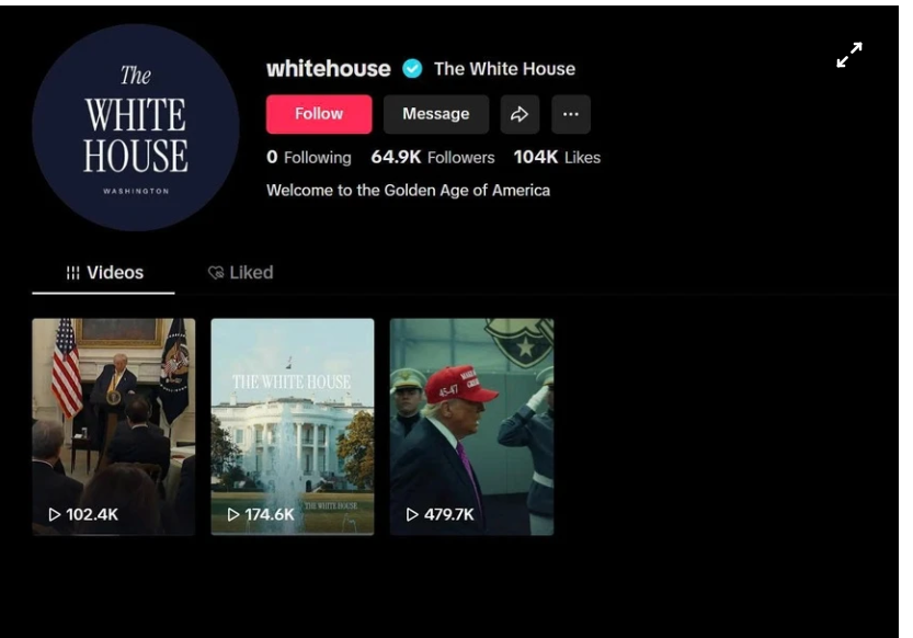 Tài khoản TikTok @whitehouse của Nhà Trắng.