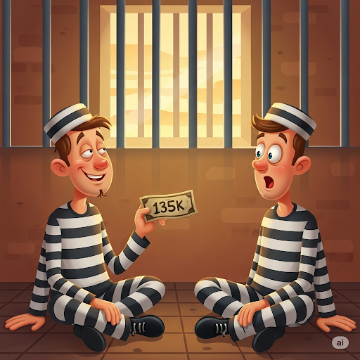 Hai tù nhân tâm sự với nhau. Một ông hỏi: – Mày đi tù vì tội gì?