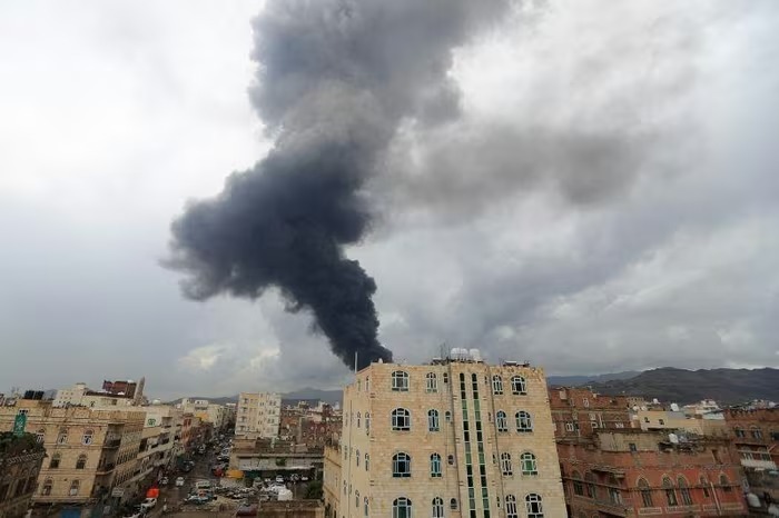 Khói bốc lên sau cuộc không kích của Israel vào thủ đô Sanaa của Yemenngày 24-8. Ảnh: AFP
