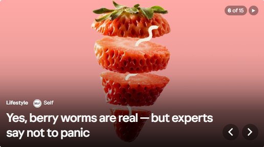 Có lẽ đây chỉ là một tṛ lừa bịp, chắc hẳn bạn đang nghĩ-và-hy vọng ngay lúc này. Suy cho cùng, người ta vẫn thường dàn dựng video để nổi tiếng trên mạng xă hội mà, phải không? Thật không may cho tất cả những người yêu thích trái cây (bao gồm cả tôi), loại côn trùng gây hại này hoàn toàn có thể xảy ra, theo lời Anna Wallis, Thạc sĩ, Tiến sĩ, Điều phối viên IPM của Chương tŕnh Quản lư Dịch hại Tổng hợp (IPM) trên trái cây của Tiểu bang New York và là cộng tác viên khuyến nông cấp cao tại Trường Nông nghiệp và Khoa học Đời sống thuộc Đại học Cornell, chia sẻ với SELF—đặc biệt là nếu bạn trồng quả mọng tại nhà. như @sarahjonline đă giải thích. Nhưng dù nghe có vẻ (hoặc trông có vẻ) kinh khủng, thực ra không có ǵ đáng lo ngại.