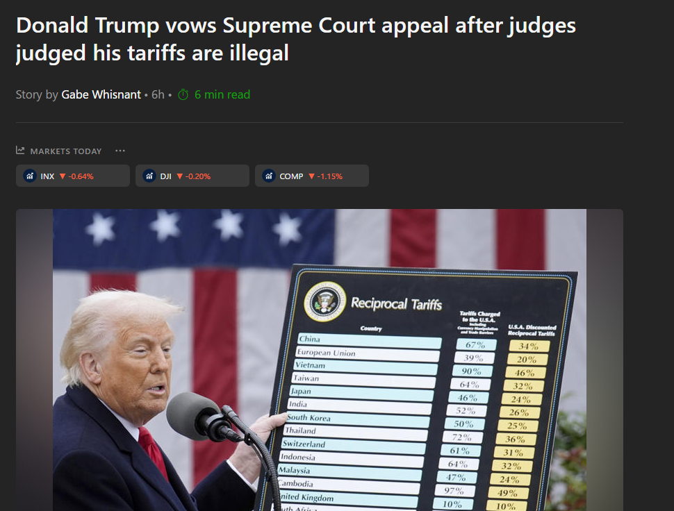 Old  Default Trump thệ sẽ kháng cáo lên TATC sau khi các chánh án phán thuế quan của ông là bất hợp pháp