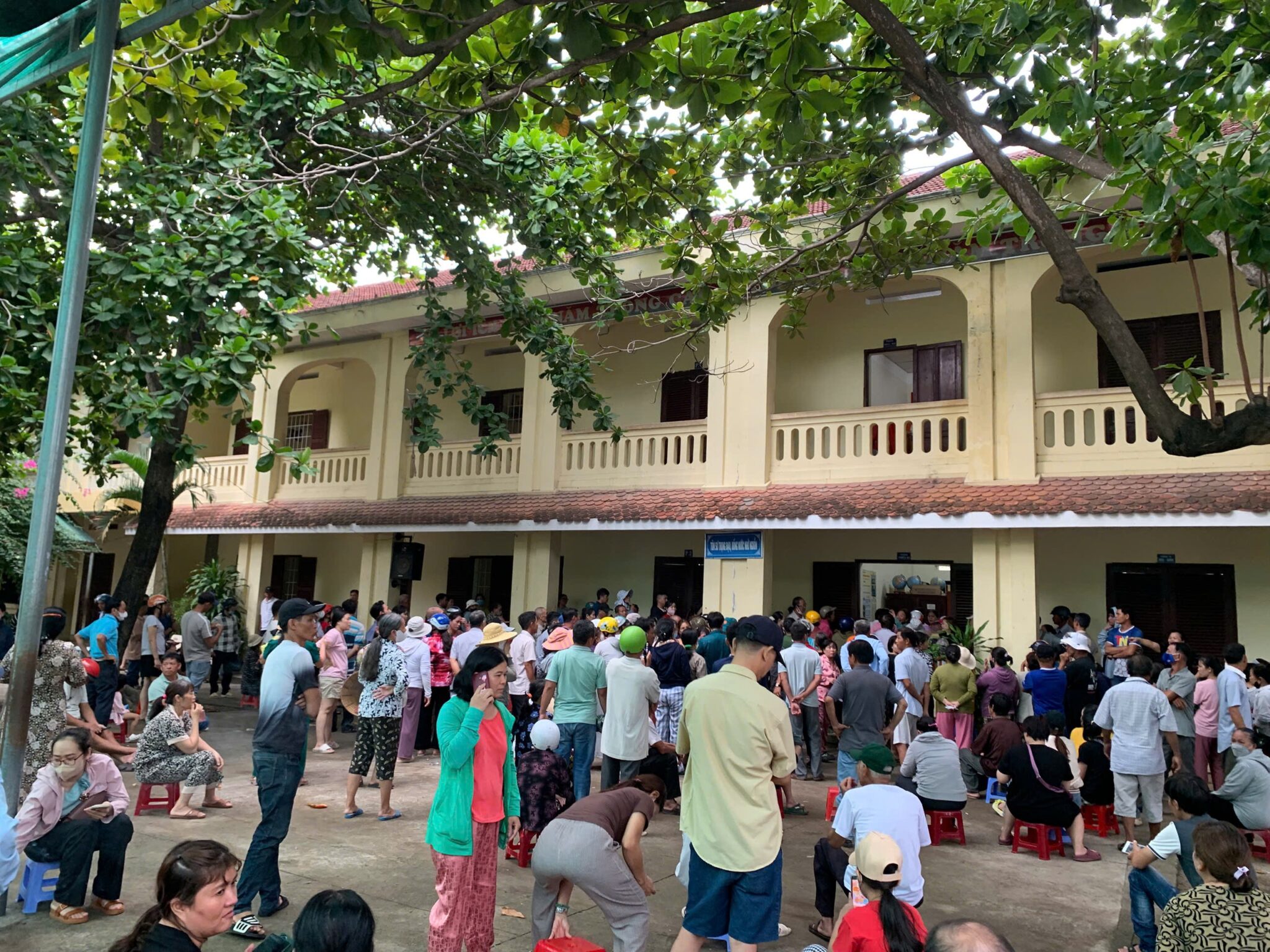 Nhiều người dân ở Nha Trang, tỉnh Khánh Hòa cũ, bị chặn lại ngoài hàng rào khi đến làm thủ tục để nhận 100,000 đồng do Nhà nước phát cho nhân Quốc Khánh 2/9 (Ảnh: Người Lao Động)