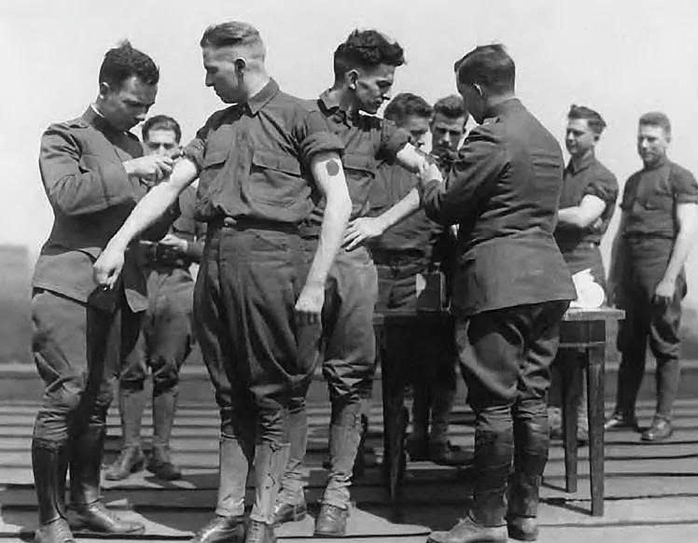 Binh lính Mỹ được tiêm vaccine đậu mùa tại Trường Y Quân đội vào khoảng năm 1920. Ảnh: Armyheritageorg