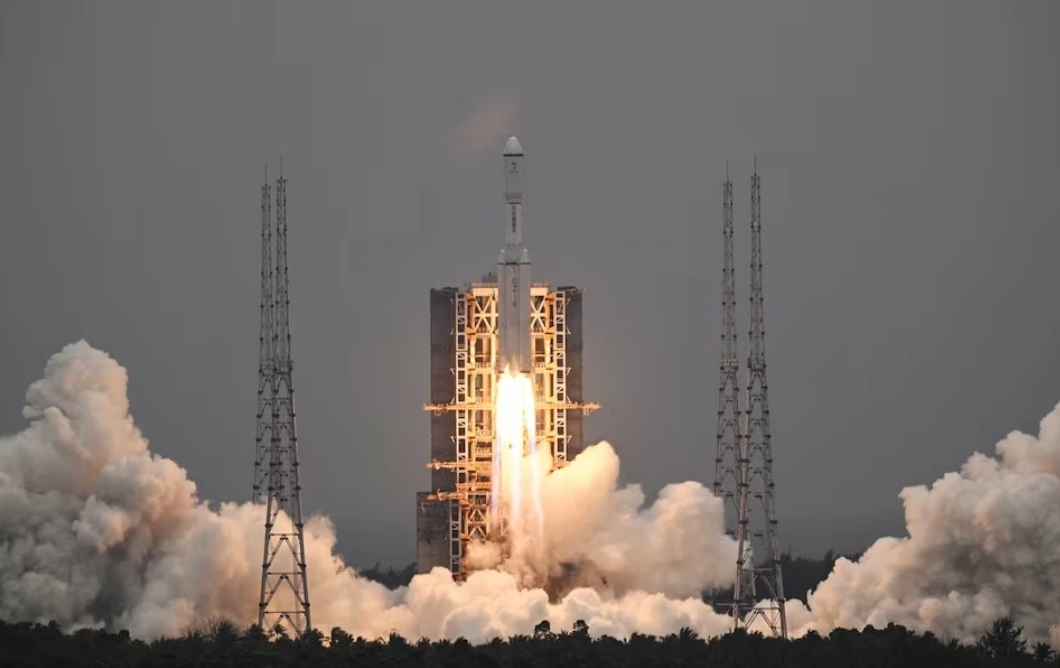Tên lửa Long March-8, mang theo vệ tinh Queqiao-2, phóng lên từ Trung tâm phóng vũ trụ Văn Xương ở tỉnh Hải Nam vào tháng 3. Ảnh: China Daily.
