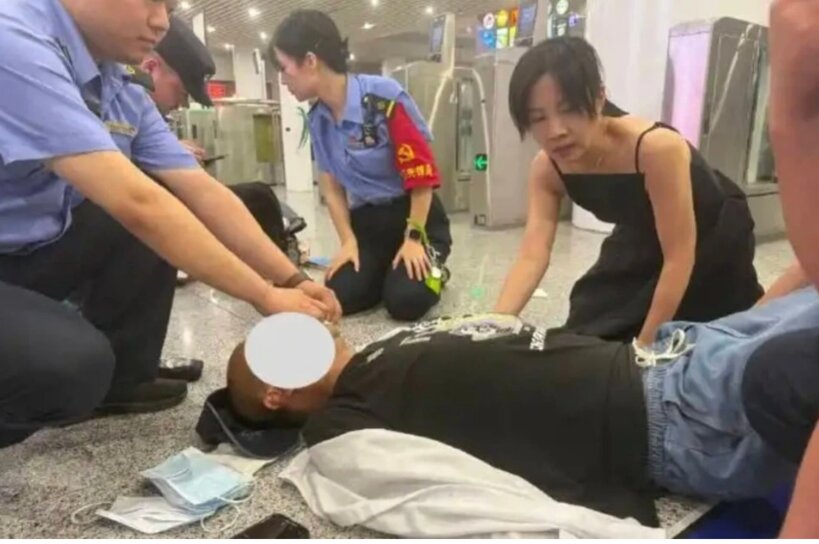 Không do dự, Li giao túi xách cho con trai, dặn “mẹ sẽ quay lại ngay” rồi chạy về phía khu vực có hành khách ngã gục. Người đàn ông lên cơn co giật, miệng chảy máu.