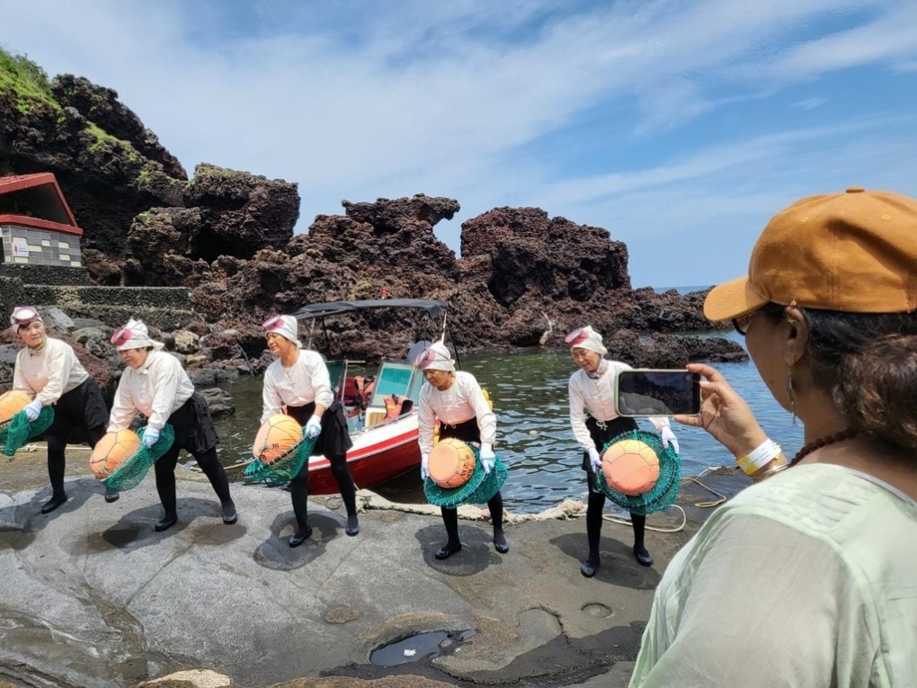 Du khách tìm hiểu về công việc của các hải nữ ở Jeju. Ảnh: hankyung