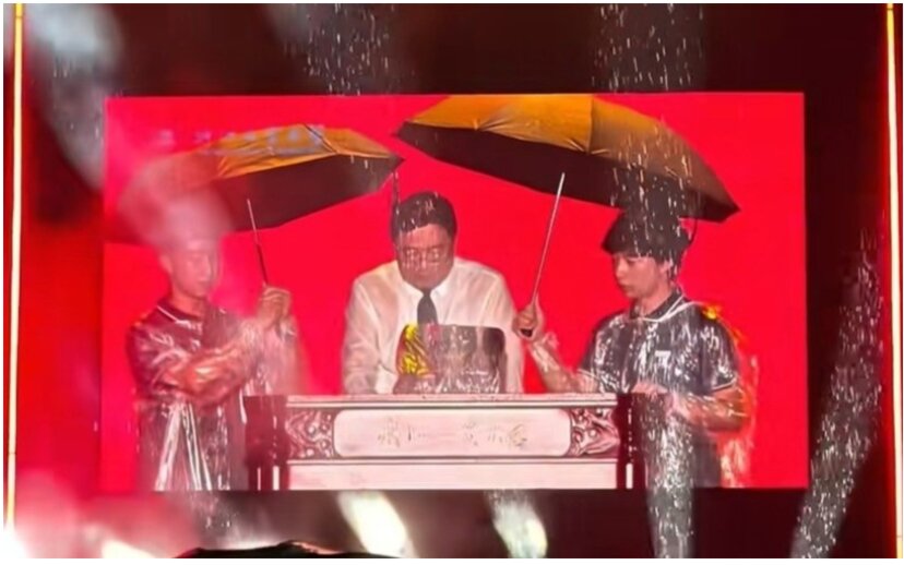 Trong lúc Hiệu trưởng Cao Tường (Gao Xiang) đang phát biểu, trời bất ngờ đổ mưa lớn. Hai nam sinh viên đã tự nguyện bước lên sân khấu che ô cho thầy. Tuy nhiên, khoảng trống giữa hai chiếc ô lại đúng vào vị trí của hiệu trưởng, khiến nước mưa dồn xuống thẳng người ông. Hình ảnh này được dân mạng dí dỏm gọi là “song ô lưu thủy” hay “đúng chuẩn song nhất lưu” (ám chỉ cụm từ “song nhất lưu” - nghĩa là “hai dòng chảy, một đẳng cấp”, đồng âm với “song nhất lưu” trong xếp hạng đại học).