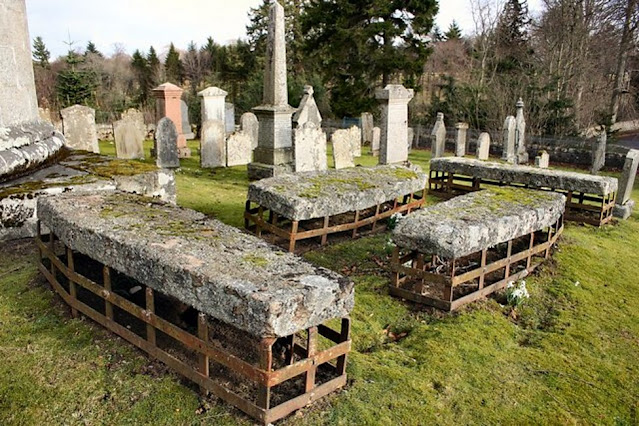 Những chiếc két đúc bê tông an toàn như thế này ở Cluny Kirkyard, Aberdeenshire, được cho sử dụng để ngăn chặn nạn đào trộm mộ. (Ảnh: BBC.co.uk)