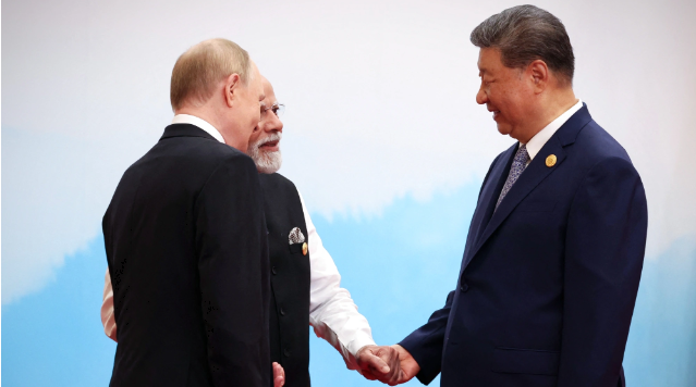 Tổng thống Nga Vladimir Putin, Thủ tướng Ấn Độ Narendra Modi và Chủ tịch nước Trung Quốc Tập Cận Bình tại hội nghị thượng đỉnh SCO ngày 1.9