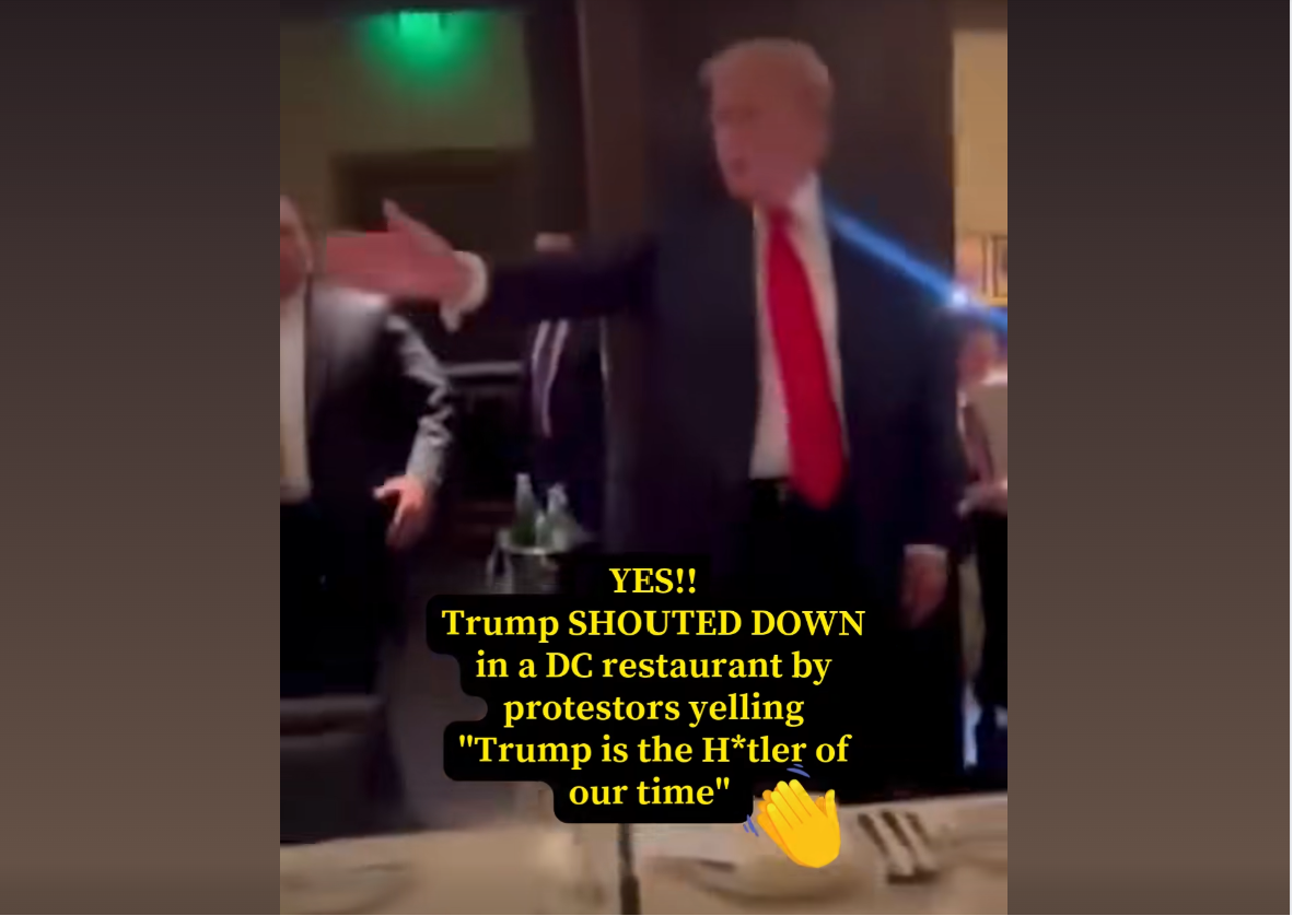 Old  Default VIDEO: Xem Trump đưa mặt khinh khỉnh ra, khi bị người biểu tình trong nhà hàng ở DC gọi ông là 'Hitler'