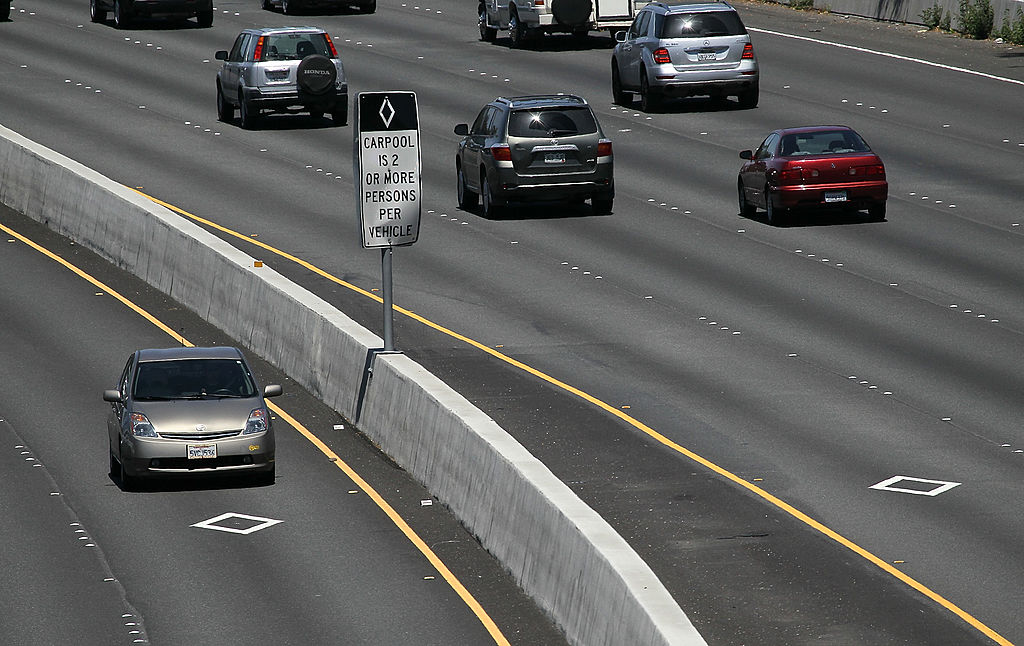 Xe điện bị mất quyền ưu tiên trong "carpool lane" ở xa lộ. (Ảnh minh họa: Justin Sullivan/Getty Images)