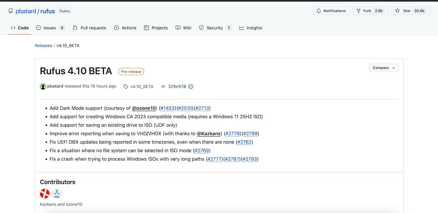 - https://github.com/pbatard/rufus/rel...tag/v4.10_BETA