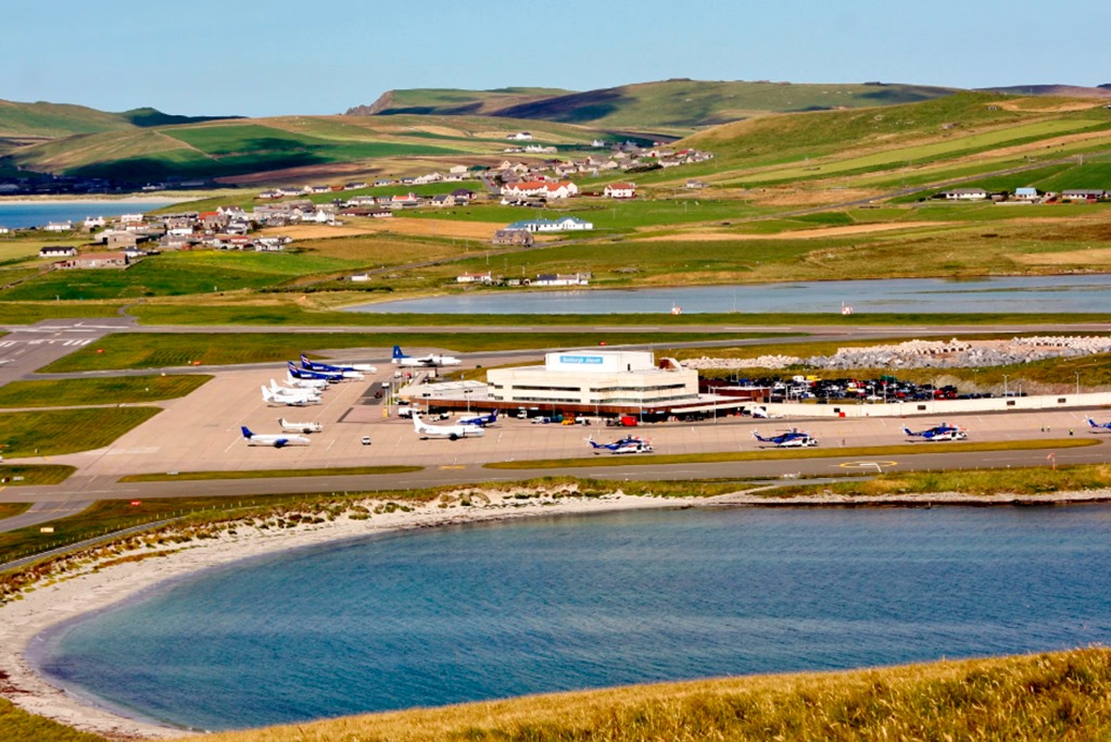 Để đến Jarlshof - khu định cư thời kỳ Đồ đồng và Viking được coi là di tích khảo cổ vĩ đại của Anh - du khách phải đi qua đường băng của sân bay Sumburgh. Con đường duy nhất ở thị trấn Lerwick là vòng quanh sân bay và cắt ngang một đầu đường băng. Khi có máy bay cất hoặc hạ cánh, nhân viên sẽ hạ rào chắn, chờ an toàn mới cho xe và người đi bộ tiếp tục di chuyển. Ảnh: Simply Flying