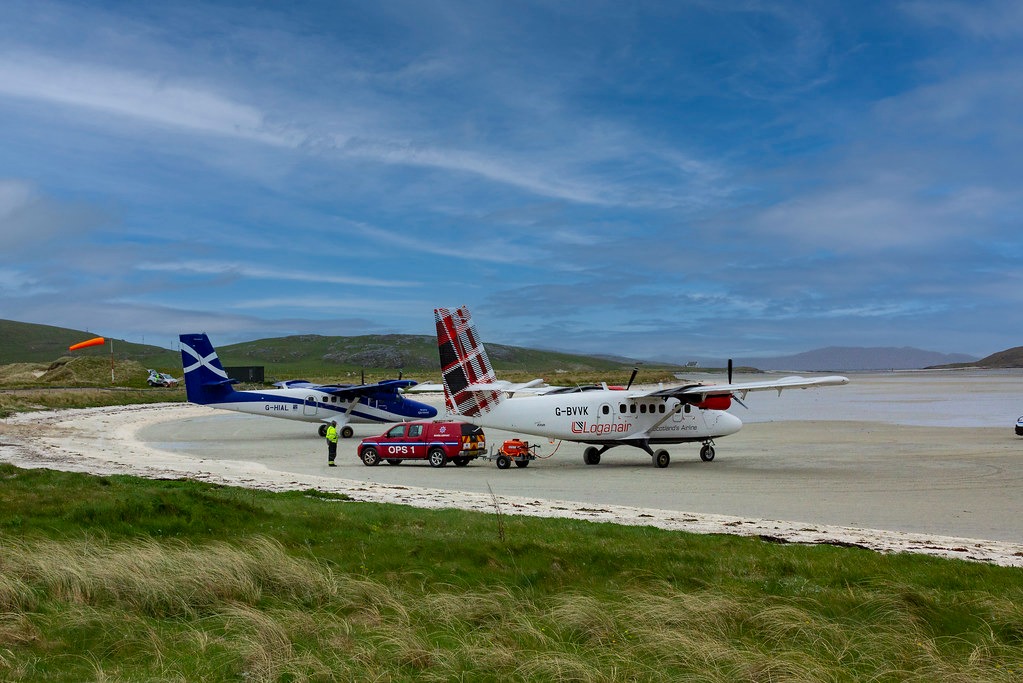 Nằm trên quần đảo Outer Hebrides, sân bay Barra là nơi duy nhất trên thế giới có đường băng nằm ngay trên bãi biển Traigh Mhòr. Loganair là hãng duy nhất khai thác đường bay dài 225 km nối với Glasgow, sử dụng máy bay 19 chỗ.