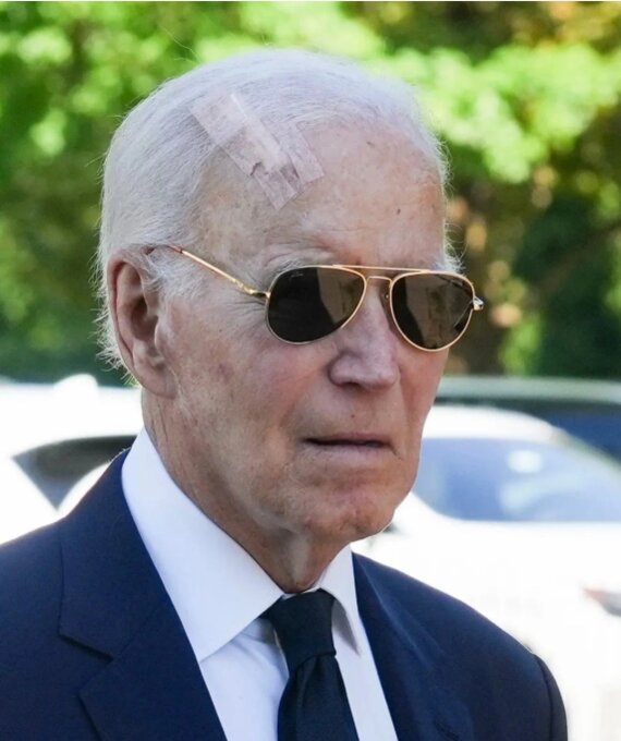 Ông Biden với vết băng bó trên đầu khi dự tang lễ cựu thống đốc Delaware Mike Castle hồi cuối tháng 8. Ảnh: USA Today
