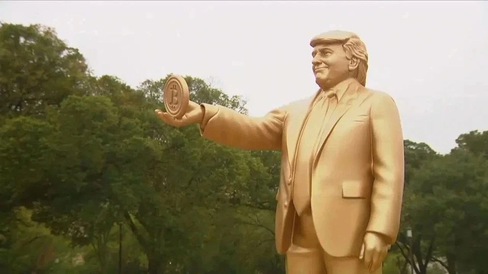 Theo như mới đây có một nhóm tổ chức mô tả đây là “sự tri ân dành cho tổng thống thứ 45 và 47 của Mỹ - vị tổng thống của Bitcoin”, nên có một bức tượng vàng khổng lồ cao khoảng 3,6 mét khắc họa ông Donald Trump cầm đồng xu có biểu tượng Bitcoin bất ngờ xuất hiện bên ngoài tòa nhà Quốc hội Mỹ, đồng thời cho biết mục đích của tác phẩm là khơi gợi tranh luận về tài sản số, chính sách tiền tệ và vai trò của chính phủ liên bang trên thị trường tài chính.