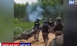 Khi dân làng Campuchia cố gắng phá hàng rào dây thép gai của Thái Lan, cảnh sát chống bạo động Thái Lan đã đáp trả bằng hơi cay và đạn cao su.
