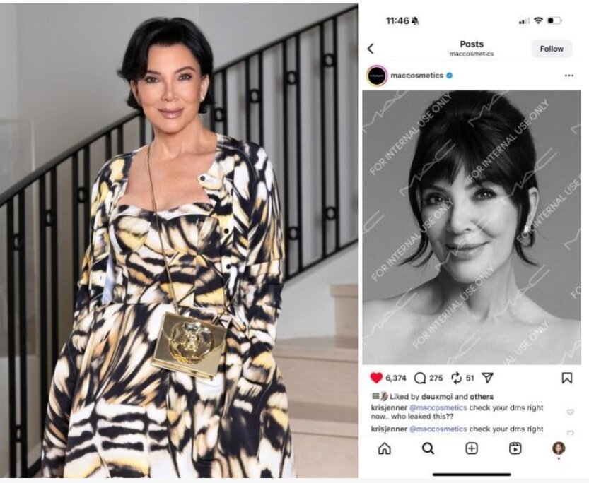 Kris Jenner tra hỏi thương hiệu mỹ phẩm vì đăng hình ảnh chưa xin phép. Ảnh: @krisjenner/@maccosmetics.