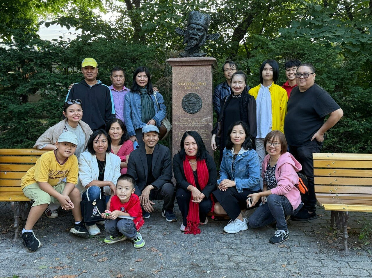Dưới chân tượng đài Nguyễn Trãi, danh nhân văn hóa Việt Nam được UNESCO công nhận, tại công viên trung tâm thành phố Québec, nơi đặt tượng đài các danh nhân văn hóa thế giới.