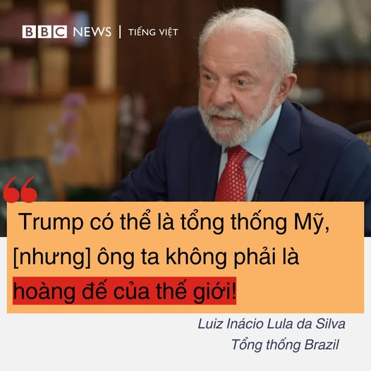 Trong một cuộc phỏng vấn độc quyền của BBC, Tổng thống Brazil Luiz Inácio Lula da Silva đã trả lời rằng ông "không có quan hệ" gì với Tổng thống Mỹ Donald Trump.